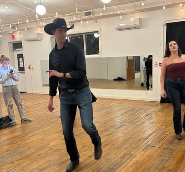 Our commitment goes beyond me. The Two Step Rodeo team is composed of other highly vetted and top-tier instructors who share our dedication to style and positive coaching. This means we guarantee quality instruction for every class, private lesson, and event—even if I'm already booked, you'll have a trusted expert leading the floor.